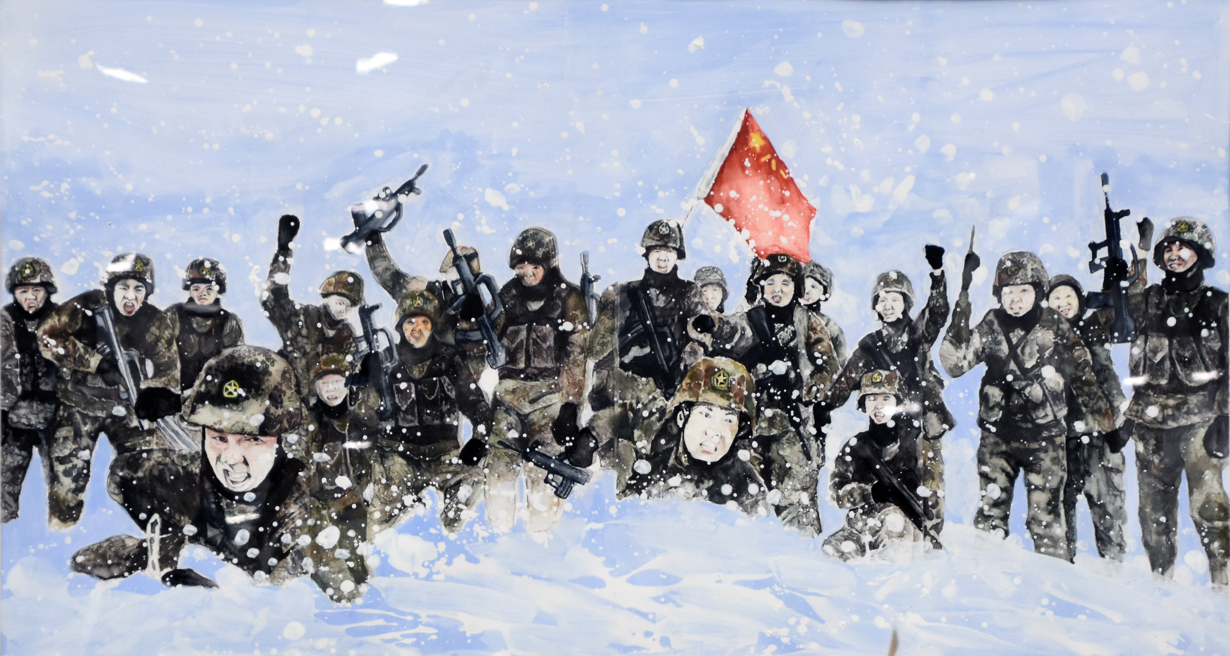 丝网版画《雪中军人》90×120cm