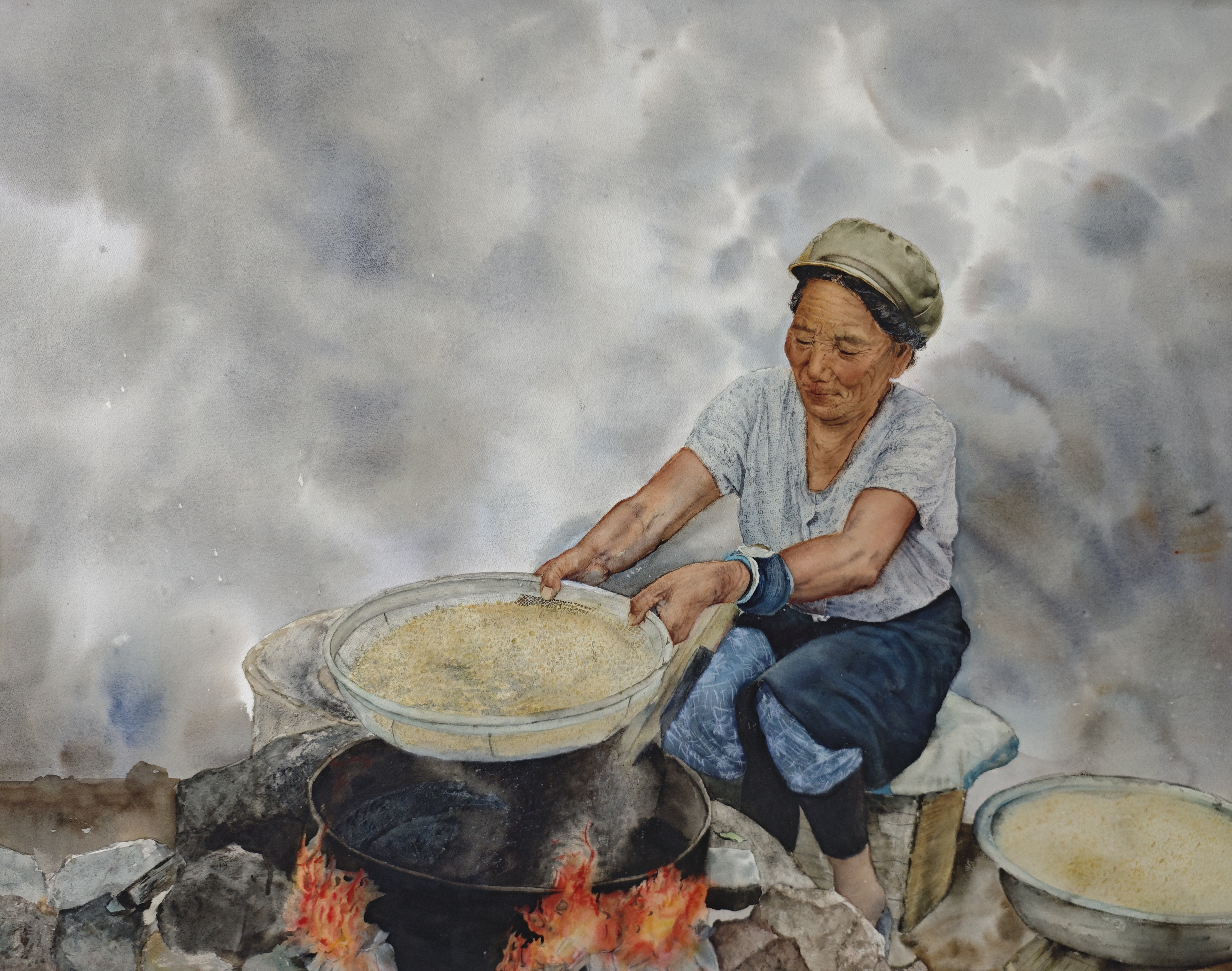 水彩《乡韵悠悠》105x133cm