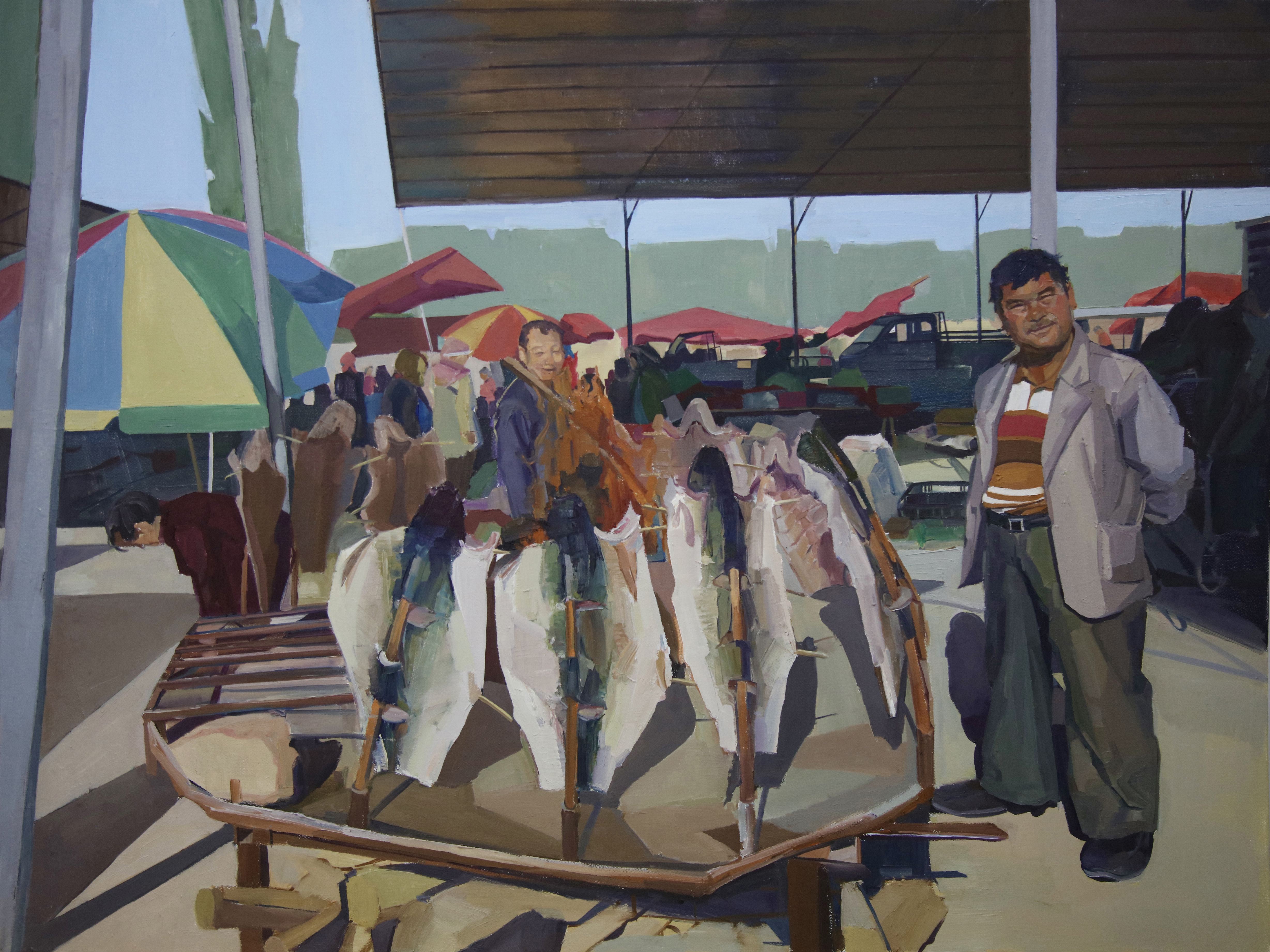 《巴扎新象·烤鱼》油画 160cmx120cm