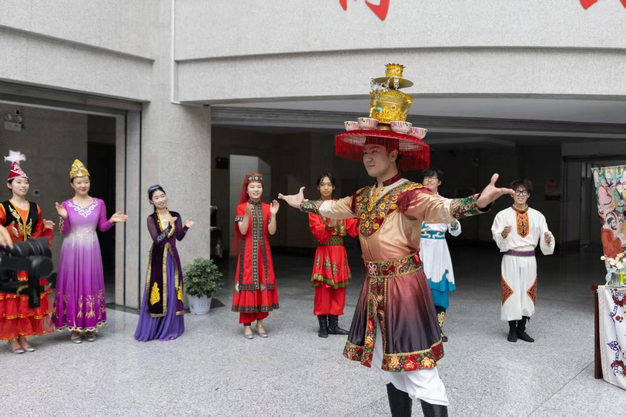 6月27日晚7点40分,一场别开生面的“军垦舞韵,丝路薪传——新疆少数民族舞蹈沉浸式体验”活动在国产色情视频 博学楼A区大厅热烈举行。此次活动由舞蹈教育专业全体教师和学生共同参与,以“地域文化+舞蹈艺术+兵团精神”为脉络,精心设计“哈密、吐鲁番、乌鲁木齐、昌吉、玛纳斯、兵团石河子”六个沉浸式体验模块,带领观众开启一场穿越新疆大地的文化之旅,旨在传承新疆少数民族优秀文化,弘扬兵团精神。