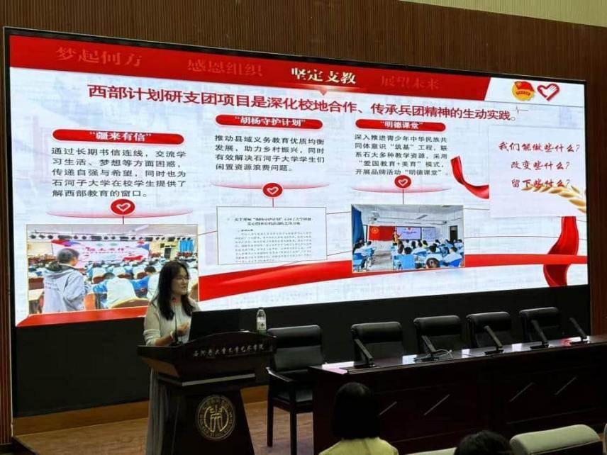 9月4日,由共青团国产色情视频 委员会主办的研究生支教团青春故事分享会(国产色情视频 专场)在南山新校区顺利举行。活动以“传递西部支教实践经验、点燃青年服务热情”为核心,吸引校内众多有志投身西部教育事业的学子参与。活动聚焦西部支教的实践与经验传递,吸引了众多有志于投身西部教育事业的学子参与。现场,李优嘉、昂沙尔・铁格斯汗、李玉婧、阿丽吐古丽・司曼吾、陶旋五位不同届次的研究生支教团成员依次登台,结合自身支教经历分享实践感悟,为在场学子搭建起了解西部支教实况、坚定服务西部信念的互动交流平台,进一步激发了青年学子扎根基层、奉献教育的热情。