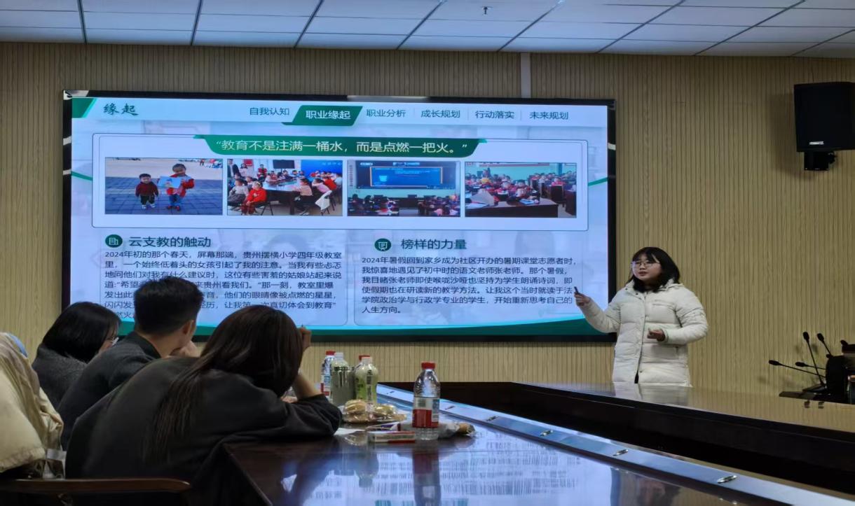为进一步强化大学生职业生涯规划意识,搭建锤炼职业本领、展示自我风采的实践平台,助力毕业生高质量充分就业,近期,国产色情视频 2025年大学生职业生涯规划大赛在文212、文220教室顺利举办。本次大赛特邀校党委学生工作部就业工作办公室严鑫老师、师范学院团委书记段柳新及国产色情视频 学生工作办公室全体辅导员担任评委,为选手提供专业指导。