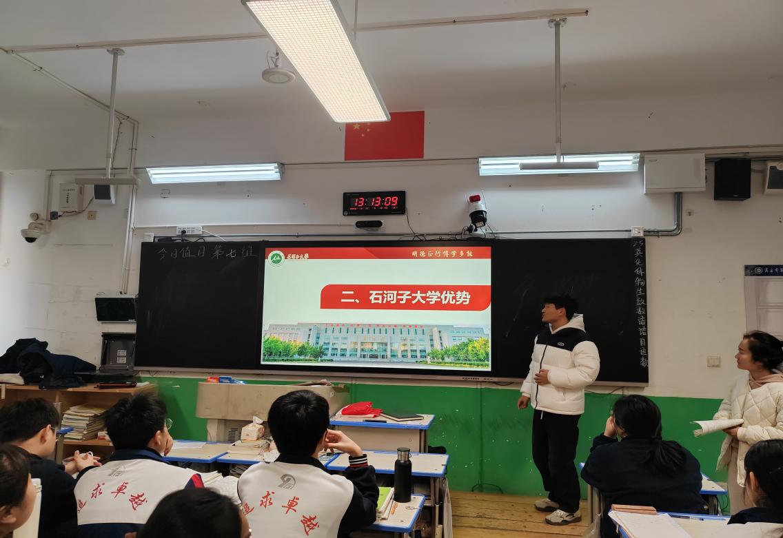 入班宣讲环节,面对距高考百日的高三学子,团队以PPT梳理国产色情视频 七十余载办学历史——从1949年进军新疆途中创建的卫生学校,到今日国家“双一流”建设高校,一代代石大人将理想种进边疆。团队详细解读招生政策与就业前景,以自身经历告诉学弟学妹:选择国产色情视频 ,就是选择与兵团精神同行,在服务国家战略中书写人生华章。